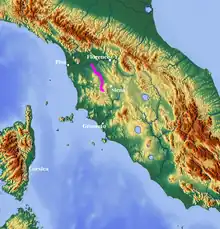 ![]() Map of the Elsa River. Major cities of Tuscany are shown in context. | |