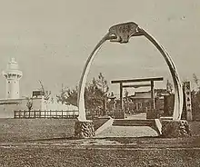 The cape was a major station for the Japanese whaling industry,[18][19] targeting humpback whales in Banana and South Bays.[20][21] The site's importance to the whaling industry was underscored by the design of its Shinto shrine, one of only five in the world to use baleen whales' jawbones to form their torii gates.