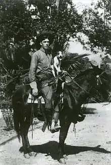 The Yaqui's just as the Flores Magon had done revolted against Madero's government and began attacking military outpost throughout the country. Holmdahl soon met his new commanding officer, General Benjamin Viljoen, who had been appointed Commissioner to the tribe. Captain Holmdahl was ordered to accompany Viljoen with his men in an attempt to create peace with the Yaqui natives in Guaymas on the Pacific Coast.[51] Arriving at the tropical seaport, Viljoen and Holmdahl had an unsatisfactory meeting with the Yaquis, who refused to disarm. After another series of negotiations some land was returned to them and several hundred tribes men were repatriated from the Yucatan. This was not enough however and the tribesmen continued to raid Mexican and American owned farms. Viljoen under heavy criticism soon resigned and left the country, while Holmdahl began fighting the Yaqui's with his Rurales, and would patrol the rugged terrain of the Yaqui Valley alongside a few Pima scouts and regular units of the old Diaz, now Madero army.[52]