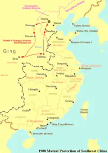 The now 16 year old Holmdahl then joined with the forces of mercenary "General" Edmund F. English, who was recruiting a foreign legion of experienced soldiers to help modernize the army of Qing Dynasty, with the backing of the Chinese Empire Reform Association, a group of western-oriented China men and San Francisco businessmen. Their Mission was to aid Empress Tzu Hsi, in putting down a series of rebellions. The men recruited by English were described by Meed as "discharged soldiers, wharf-rats, and European Freebooters" and formed the regiment known as the Royal Imperial Guards, Sinim Order of Dragoons, which would serve as both shock troops and royal bodyguards. Holmdahl was commissioned in the regiment as an ensign, possibly do to his "exquisite hand writing and flair for expressing himself". The regiment, having successfully recruited a decent force set sail for China.[13]The regiment arrived at the Shanghai harbor just in time for the situation to increase tenfold.