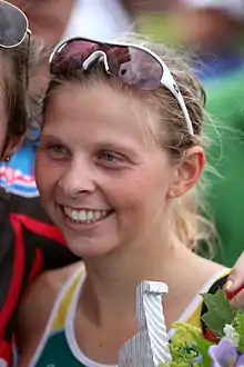 At the 2012 Summer Olympics, she competed for Australia, finishing in 8th place.[2] At the 2014 Commonwealth Games, she won a bronze medal in the mixed relay with Emma Moffatt, Aaron Royle and Ryan Bailie.[3]