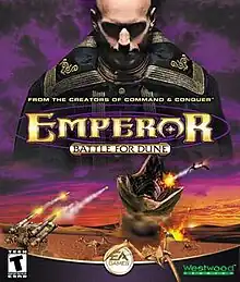 Emperor: Battle for Dune is a real-time strategy video game, released by Westwood Studios in June 2001. It is based in Frank Herbert's science fiction Dune universe. It follows its predecessors, Dune II and Dune 2000. While Dune II was a distinct story to that of Dune, and Dune 2000 was a remake of Dune II, Emperor: Battle for Dune is a direct sequel to the previous games. In particular, it is a sequel to Dune 2000, carrying on from where it left off, with several of the characters and actors returning. Like Dune 2000 and many of the other Westwood games that came before it, Emperor features live action cut scenes filmed with actors.