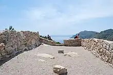The settlement of Lefkonio was an archaic-period settlement that included a walled acropolis with a megaron and the Temple of Athena, the remains of both of which are visible on the hill of Prophet Elias, as it is known locally. There were also the houses around it, as well as a sanctuary close to the harbor. The acropolis was fortified, and the rampart around it enclosed an area of approximately 25,000 square metres (270,000 sq ft). The rampart is still partly visible in some areas.[3]