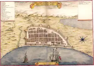 By 1615, Visitación was in poor condition, as it already had several years of service.[28] In the middle of that year, it stayed in Callao to protect the port, with 30 men and 12 guns, from the threat of the Dutch squadron under Joris van Spilbergen.[29][upper-alpha 5] Shortly after, it set sail for Panama in a convoy, carrying money from the Royal Treasury and private sector, and to bring the new Viceroy of Peru, the Prince of Esquilache. In the government of Esquilache, the veteran Visitación was still in service despite its shortcomings when sailing close-hauled.[33] Later, with the realization of the naval plans of Esquilache between 1617 and 1619, it was sold to finance the purchase of other warships.[33]