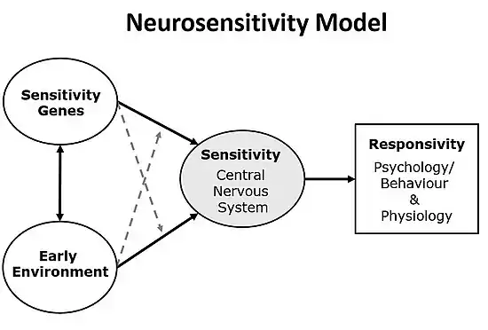 Differential susceptibility, proposed by Jay Belsky, brings the differential responses to both positive and negative experiences together in one single model. Grounded in evolutionary theory, Belsky and colleagues sought to understand why and how children differ so fundamentally in their developmental response to external influences, with some being more and others less susceptible.[6][7] Importantly, the theory finds that more susceptible individuals are not only more negatively affected by adverse experiences (as described in the Diathesis-stress model) but also particularly positively affected by the presence of favourable conditions (as described in the Vantage Sensitivity model). According to empirical studies, Differential Susceptibility is associated with various genetic, physiological and psychological factors, some of which are described below (see Empirical Evidence). Although early research suggested that differences in individuals' susceptibility are rooted in genetic factors, more recent research has shown that susceptibility is also influenced by prenatal and early postnatal environmental factors.