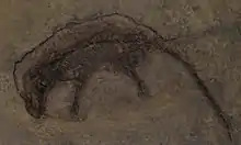 Eomaia ("dawn mother") is a genus of extinct fossil mammals containing the single species Eomaia scansoria, discovered in rocks that were found in the Yixian Formation, Liaoning Province, China, and dated to the Barremian Age of the Lower Cretaceous about 125 million years ago.[1] The single fossil specimen of this species is 10 centimetres (3.9 in) in length and virtually complete. An estimate of the body weight is 20–25 grams (0.71–0.88 oz). It is exceptionally well-preserved for a 125-million-year-old specimen. Although the fossil's skull is squashed flat, its teeth, tiny foot bones, cartilages and even its fur are visible.[1]
