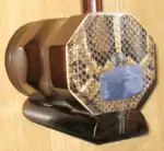 - Qín pí/Shé pí (琴皮/蛇皮), skin, made from python. The python skin gives the erhu its characteristic sound.