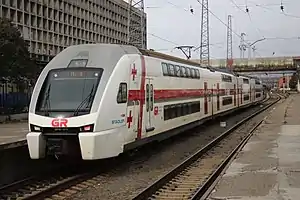 The ESh2 Eurasia (Russian: ЭШ2 «Евразия», also Yevraziya) is the Russian gauge version of the Stadler KISS double-deck electric train. These trains are used by three operators— Aeroexpress, Azerbaijan Railways and Georgian Railways.
