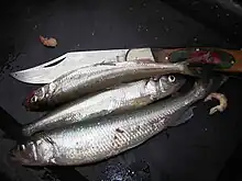Although it is very small, the smelt is prized as food. Its head is usually removed, but the tail and the bones are not because they are very soft. Smelt is generally eaten by hand. The fish is usually fried.