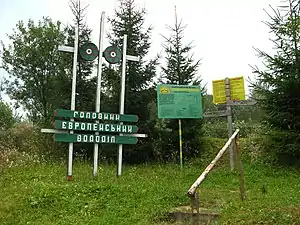 The Watershed continues in an eastern direction along the Jeseníky Mountains down to the Moravian Gate and uphill into the Beskids, with the Oder and Vistula basins in the north, reaching the triple point of Poland with Slovakia and Ukraine in the Bieszczady Mountains.[11] Then, the Watershed goes northeast near the Poland–Ukraine border, passes through the city of Lviv and, via Volyn, enters Belarus. Then it runs east-northeast along the Belarusian Ridge and continues to the Smolensk Oblast of Russia, ending at the triple point with the Caspian drainage basin in the Sychyovsky District, near the midpoint between the Western Russian cities of Smolensk and Tver.[12]
