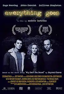 Everything Goes (stylized as everything goes) is a 2004 short film directed by Andrew Kotatko. It is based on the 1978 short story Why Don't You Dance? from Raymond Carver's 1981 collection What We Talk About When We Talk About Love. The film stars Hugo Weaving, Abbie Cornish and Sullivan Stapleton. Everything Goes won the award for Best Short Film at the 2004 Inside Film Awards and was the only Australian film selected for the prestigious Clermont-Ferrand International Short Film Festival in 2005.