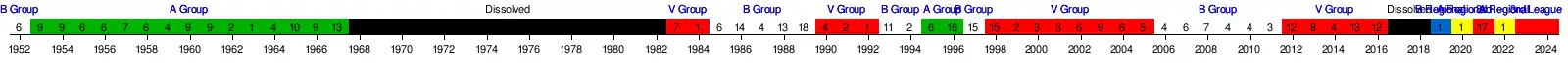 In 1967, Spartak was merged with SSK Akademik and Botev Plovdiv into a new club – AFD Trakia. An independent Spartak did not re-emerge until 1982. The club spent the period from 1982 to 1994 in the second and third divisions. In the 1993–94 season, Spartak finished 2nd in B PFG, and qualified again for the A PFG, after 27 years of absence from top football. But two seasons later, the team was relegated again to the B PFG. The club merged in 1998 with Komatevo Sokol`94 and were renamed Spartak-S`94. This remained the club's official name until the 2001–02 season.