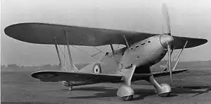 The Fantôme first flew on 6 June 1935 at the Great West Aerodrome (now part of London Heathrow Airport.[5] The aircraft was shown at the 1935 RAF and SBAC airshows at RAF Hendon in July before being delivered to Belgium to take part in the Belgian fighter competition.[3][6] It crashed at Evere on 17 July during the competition, killing the pilot.[3] Fairey had already produced parts and components for three other aircraft. These were shipped to Belgium in 1936 and completed under the name Fairey Féroce at Avions Fairey's factory at Gosselies, but Belgium had meanwhile revised its requirements for fighters.[7] Two of them were sold to the Soviet government,[8] which some sources state later gave them to the Spanish Republican air force during the Spanish Civil War,[8][9] other sources claim that no evidence can be found of such a transfer.[10][1][11] The fourth aircraft returned to Britain where it was acquired by the British Air Ministry, where both its flying performance and its armament were evaluated.[12][11] It was transferred to the Air Gunnery School at Rolleston in December 1940 and struck off charge on 19 March 1943.[11] No further production was undertaken.[12]
