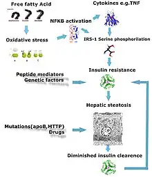 - Medina J, Fernández-Salazar LI, García-Buey L, Moreno-Otero R (August 2004). "Approach to the pathogenesis and treatment of nonalcoholic steatohepatitis". Diabetes Care. 27 (8): 2057–66. doi:10.2337/diacare.27.8.2057. PMID 15277442.