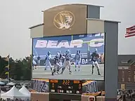 In 2009, the university installed a new $5 million 30x80 foot north end zone scoreboard with updated video capabilities and new sound system. The new north end zone video board and audio upgrades replaced the 10-year-old DiamondVision equipment.[26] At the time of construction, it was the fourth largest scoreboard in the Big 12 Conference, behind Godzillatron at Texas' DKR Stadium, the south scoreboard at Owen Field in Norman, Oklahoma, and "12th Man TV" at Kyle Field in College Station. When the Tigers entered Southeastern Conference play, the Faurot Field video scoreboard was the ninth largest in the SEC.