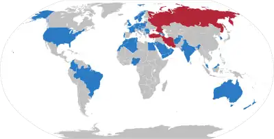 In red: Countries that were invited to the conference but did not participate.