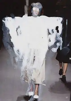 These are other works of the 1990s have been discussed alongside cyberfeminism and cyberfeminist collectives such as VNS Matrix, OBN/Old Boys Network, and subRosa.[27] Building on earlier examples of feminist art that had incorporated technologies such as video and digital photography, feminist artists in the 1990s experimented with digital media, such as the World Wide Web, hypertext and coding, interactive art, and streaming media. Artist and feminist theorist Bracha L. Ettinger developed the idea of the Matrixial Gaze.[28][29] Some works, such as Olia Lialina's My Boyfriend Came Back From The War (1996), utilized hypertext and digital images to create a non-linear narrative experience about gender, war, and trauma.[30] Other works, such as Prema Murthy's Bindigirl (1999), combined performance art with streaming video, live chat, and a website to interrogate gender, colonialism, and online consumerism.[31] Works such as Victoria Vesna's Bodies© INCorporated (1997) used virtual reality media such as 3D modeling and VRML to satirize the commodification of the body in digital culture.[32]