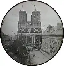 Ferdinand Philippe's funeral service was held in Notre Dame which was covered not in black fabric (of which there wasn't enough) but, at the suggestion of the architect Visconti, black paper. He was interred in an elaborate tomb in the Chapelle Royale, in Dreux, Eure-et-Loir.
