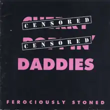 Ferociously Stoned was originally released on vinyl and CD by independent label Sub Par Records, the vinyl cover depicting three bikini-clad women clutching stones against a backwards American flag, and the subsequent CD release featuring only the band's name with censor bars over the words "Cherry" and "Poppin'". In March 1991, when the Daddies had temporarily shortened their name to "The Daddies" to alleviate the controversy surrounding their name, the album was re-released with the shortened band name and new cover art featuring a skeleton in formal wear, modeled after the Grateful Dead's "Uncle Sam" skeleton.[6][7] In 1994, coinciding with the release of the Daddies' second album, Rapid City Muscle Car, Ferociously Stoned was re-issued on CD, restoring the band's full name and including the tracks from their 1989 demo tape 4 From On High as bonus content.