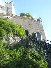 The Festungsbahn is a funicular railway providing access to Hohensalzburg Fortress in Salzburg municipality in Austria. It links the fortress with Festungsgasse, below the northern side of the fortress's walls. The Festungsbahn opened in 1892, and should not be confused with the much older Reisszug line that provides goods access to the castle.[2][3]