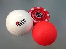 The flat side is always on the "natural" side for a right-handed person swinging the stick at the ball from right to left. Left-handed sticks are rare, as International Hockey Federation rules forbid their use in a game.[26] To make a strike at the ball with a left-to-right swing the player must present the flat of the 'face' of the stick to the ball by 'reversing' the stick head, i.e. by turning the handle through approximately 180° (while a reverse edge hit would turn the stick head through approximately 90° from the position of an upright forehand stroke with the 'face' of the stick head).
