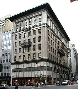 The first commercial building on Fifth Avenue was erected by Benjamin Altman who bought the corner lot on the northeast corner of 34th Street in 1896.[21] The B. Altman and Company Building was erected between 1906 and 1914, occupying the whole of its block front. The result was the creation of a high-end shopping district that attracted fashionable women and the upscale stores that wished to serve them.[22]: 266 The Lord & Taylor Building, formerly Lord & Taylor's flagship store and now a WeWork office, was built at Fifth Avenue and 38th Street in 1914.[23] The Saks Fifth Avenue Building, serving as Saks Fifth Avenue's flagship, opened between 49th and 50th Streets in 1924.[24] The Bergdorf Goodman Building between 57th and 58th Streets, the flagship of Bergdorf Goodman, opened in stages between 1928 and 1929.[25]: 2