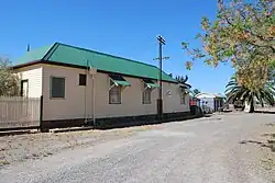 The Finley Railway Precinct[7] is listed as a heritage site due to its pioneer station group with the building and platform located at ground level (Yass Town being the only such other building). The yard contains much of the original layout and buildings with intact goods shed, gantry crane, lamp room as well a small second station building.