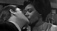 An episode of I Spy titled "The Tiger", broadcast on January 5, 1966, featured a scripted kiss between Eurasian actress France Nuyen and Robert Culp.[2]