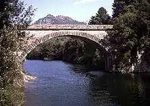 Above and below the Sampolo dam the river has cut two series of rocky gorges. A small pool between the two has now been covered by the reservoir. The upper gorge, the Défilé des Strette, is less dramatic than the lower Défilé de l’Inzecca. The northern side of the Défilé de l’Inzecca is a Natura 2000 site.[7] The Inzecca gorge has unique geological and floristic aspects found nowhere else in Corsica or France.[8]