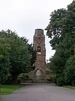 In the 1840s, Joseph Paxton was approached to design a large municipal cemetery for the expanding township of Birkenhead, but because of a recession and a subsequent decrease in the population, the plan went no further.[2] By the 1860s, a boom made the provision of a new cemetery a priority. A competition was held for the design which was won by Edward Kemp,[2] a pupil of Paxton's and Curator of Birkenhead Park. Kemp was assisted by Edward Mills, a prominent Birkenhead surveyor from Hamilton Square, and Messrs Lucy and Littler, architects of Liverpool.[2] The general contractor was William Rimmer of Bidston Hall, with John Middlehurst of St. Helens the contractor for buildings.[3] The site chosen was Flaybrick Hill, a prominent location overlooked by Bidston Hill. Originally 16.5 acres (6.7 ha) were purchased, but by the 1890s the site was extended to 26 acres (11 ha).[2]