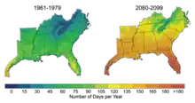 Southern Florida's mangroves are a tropical species that are limited to the tip of the Florida peninsula and the Florida Keys due to a climate preference. The upper portion of Florida falls into a sub-tropical climate hindering mangrove growth there due to cold weather events such as freezing. Twenty-eight years of satellite imagery has shown that mangroves have shifted their range northward in Florida in response to less harsh winters and less frequent cold events.[14] This is an issue apart from sea level rise which will cause mangroves to move inland even though both are caused by climate change.