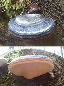 Fomitopsis rosea is a pink polypore found in Western North America[1] and in Europe. This is a close relative of another pink conk, the Rosy Conk (F. cajanderi). While F. cajanderi is a plant pathogen, F. rosea is a detritivore.[1]