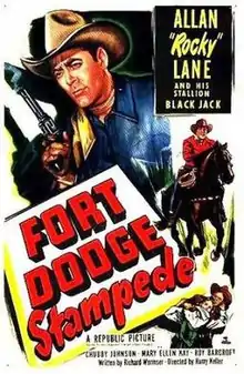 Fort Dodge Stampede is a 1951 Western film produced and directed by Harry Keller and starring Allan Lane. This film is one of 34 'B-movie' westerns filmed between 1947 and 1953 featuring Allan 'Rocky' Lane and his horse Black Jack.[1][2]