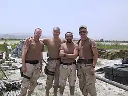 ![]() U.S. Army Soldiers and contractors pose for a photograph at FOB Chapman in July 2002 | |