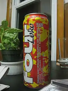 Four Loko is a line of alcoholic beverages sold by Phusion Projects of Chicago, Illinois, United States. Four Loko's recipe formerly included caffeine. Phusion operates as Drink Four Brewing Company.[1] Four Loko, the company's most popular beverage, debuted in the United States market in 2005 and is available in 49 states, and in 21 countries including Ecuador, Guatemala, Paraguay, The Bahamas, Peru, Mexico, Colombia, Bolivia, Honduras, El Salvador, Nicaragua, Costa Rica, China, Canada and some countries in Europe.[2] The name "Four" is derived from the original drink having four "key ingredients".[3]