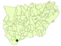 Frailes is located 89 km south of the capital city, Jaén. The village is 55k north of Granada, which tends to make the community look toward Granada for key services. At a height of 974 metres above sea level, Frailes municipal district includes the territories of los Bailadores, Los Baños, Los Barrancos, Cañada de Alcalá, Cañada de Nogueras, Cerrillo el Ciego, Majada Abrigada, El Nogueral, Las Parras, Puerto Blanco, Los Rosales y La Solana de la Parra. Frailes is located at the Sierra Sur de Jaén and its territory comprises primarily mountain ranges.
