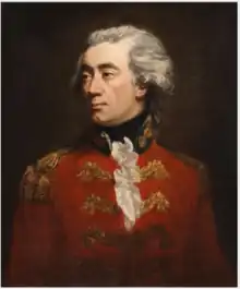 Rawdon was posted at Boston as a lieutenant in the 5th Regiment of Foot's Grenadier company, which was then under the command of Captain Francis Marsden. He first saw action at the Battles of Lexington and Concord and the Battle of Bunker Hill. Serving with the grenadiers, he participated in the second assault against Breed's Hill (which failed), and the third assault against the redoubt. His superior, Captain Harris, was wounded beside him. At the age of 21, Lord Rawdon took command of the company for the third and final assault.[7] When the troops of the third assault began to falter, Rawdon stood atop of the American redoubt, waving the British ensign. John Burgoyne noted in dispatches: "Lord Rawdon has this day stamped his fame for life." He also was wounded during the assault.[1] He was promoted captain, and given a company in the 63rd Foot.[8]
