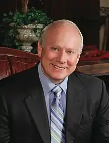 Frank Leonard VanderSloot[1] (born August 14, 1948) is an American entrepreneur, radio network owner, rancher, and political campaign financier. He is the founder and former chief executive officer of Melaleuca, Inc.[2][3] His other business interests include the Riverbend Ranch[4][5] and Riverbend Communications.[6] VanderSloot also serves on the board of directors and executive board of the U.S. Chamber of Commerce.[7][8] In 2011, The Land Report listed him as the nation's 92nd largest landowner.[1] In 2017, Forbes listed VanderSloot as the richest person in Idaho and the 302nd wealthiest American with a net worth of $2.7 billion.[9][10]