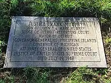 The Frank Murphy Hall of Justice was home to Detroit's Recorder's Court and now houses part of Michigan's Third Judicial Circuit Court.[53] There is a plaque in his honor on the first floor, which is recognized as a Michigan Legal Milestone.[54]