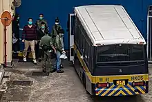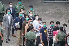 In the morning on 6 January 2021, the National Security Department of the Hong Kong Police Force raided 72 places, including the home of jailed activist Joshua Wong, as well as co-organisers Hong Kong Public Opinion Research Institute (PORI) and law firm Ho Tse Wai and Partners. It further demanded three news outlets Apple Daily, Stand News and InMedia HK to hand over information, and froze HK$206,000 in funds related to the election. In the operations, the police arrested 55 men and women[lower-alpha 1] including activists, former legislators, social workers and academics who organised or contested in the primaries across the pro-democracy spectrum on suspicion of "subversion of state power" under the national security law.[19][20] They included organiser Benny Tai and jailed activist and primary candidate Joshua Wong, seven former legislators of the Democratic Party, the Hong Kong's largest opposition party including the party chairman Wu Chi-wai, veteran politicians and activists Leung Kwok-hung and Claudia Mo, and newcomers including Jeffrey Andrews, a social worker serving the city's ethnic minority community, and disability rights advocate Lee Chi-yung.[21][22] American lawyer John Clancey, partner of Ho Tse Wai and Partners and treasurer of the Power for Democracy which co-ordinated the primaries, was also arrested.[23] PORI executive director Robert Chung and his deputy Chung Kim-wah were also visited by police asked to assist with the investigation.[24]