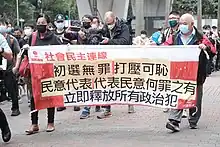 As of 8 March 2022, only 13 of 47 defendants had been granted bail, a reflection of the stringent requirements for bail under the national security law.[8] By early July 2021, many of the defendants had announced their retirement from politics.[9] The trial began on 6 February 2023[10] and progressed slowly, with the last three defendants testifying in August 2023. The trial was then adjourned to November 2023.[11]