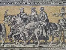 July 1455 saw the Prinzenraub, the attempt of a knight named Kunz von Kaufungen to abduct Frederick's sons Ernest and Albert. Having carried them off from Altenburg, Kunz was making his way to Bohemia when the plot was accidentally discovered and the princes restored.[1]