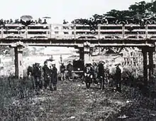 The mission consisted of 17 members, under the authority of the Minister of War General Jacques Louis Randon, covering a wide range of expertise: four officers (representing infantry, artillery and cavalry), ten non-commissioned officers and two soldiers. The original mission composed of 15 members, arriving in Japan in January 1867, and was later supplemented with non-commissioned officers Cazeneuve, Jourdan and Michel (February 1868). The mission was headed by staff captain Charles Sulpice Jules Chanoine, at that time an attaché to the military staff of Paris. The members were:[1][2]