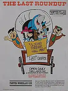 In 1980, the undeveloped land and Frontier Village were sold to a land developer, the Bren Company.[28] Despite a petition drive that collected 10,000 signatures by September 19, 1980, which would have declared the site a historical landmark,[28] Rio Grande announced the park would be closed. During its final days, it held a special event titled "The Last Roundup", attracting 30,000 visitors per day.[11] Television advertisements publicizing the last days included a stagecoach ride and a prisoner lamenting that he would miss the park's closing.[30] The park closed its gates for the last time on September 28, 1980.[2] The Bren Company held a public auction in October 1980, disposing of all the rides, buildings, and lumber that made up Frontier Village.[3]