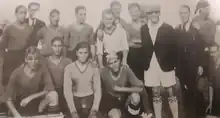 In another match played on 27 August of the same year, the Frosinone team reached the Rossoneri of the C.S. Alatri thanks to a marking by its captain Renato Calmanti.[5] At that time the presence of category players in the military selection stimulated the competitive activity of the Unione Sportiva Frusinate, which was deployed on the field with the white and blue social colors. After affiliation to the FIGC in 1923 and registration in the IV Lazio Division, in 1925 the Unione Sportiva Frusinate passed the baton to the new Società Sportiva Alba Frusinate.