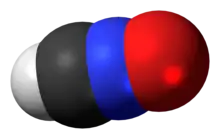The structure of the molecule has been determined by microwave spectroscopy with the following bond-lengths - C-H: 1.027(1)Å, C-N: 1.161(15)Å, N-O: 1.207(15)Å.[4]