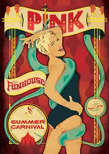 The Funhouse Summer Carnival Tour was the fifth concert tour by American recording artist Pink, launched in support of her fifth studio album Funhouse (2008).[1][2] The Funhouse Summer Carnival and the Funhouse Tour (2009) sold a combined total 3 million tickets, and brought the tour to a final gross of $150 million. With the tour, Pink became the only female artist to sell out stadium shows in 2010 and the first solo female act to open the Wireless Festival in London, UK. Tor Nielson of Live Nation Sweden gave a statement calling Pink "Sweden's biggest stadium act" of 2010.[3] The tour grossed more than $46.4 million from 30 shows.[4]