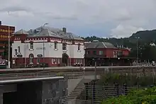 On 29 April 1979, Fylkesbilene opened its combined bus station and train station at Steinkjer Station. It was the first such combined station in Norway, having cost NOK 3.7 million.[21] In 1981, Fylkesbilene bought Arne Bruem's concessions and buses that operated the town bus in Steinkjer. From 1 September 1985, the infrastructure was upgrade and higher frequency introduced. The yellow Buster buses were introduced on the town routes in 1991.[26] A garage was opened in Kolvereid in 1979, costing NOK 1.5 million.[27] From 15 September 1983, Fylkesbilene started distribution of food produce from the cooperatives Namdalsmeieriet, Bøndenes Salgslag and Gartnerhallen to food stores in Namdalen, in a cooperation to reduce transport costs.[24] In Verdalsøra, the company opened a bus station at Verdal Station on 1 October 1983 for NOK 2 million.[28] In 1985, the bus route from Ytre Namdal was moved, so it went to Grong instead of Namsos.[24]
