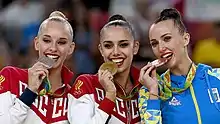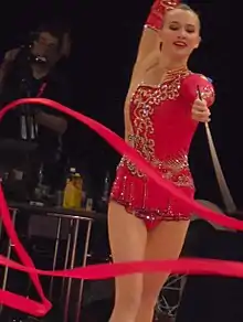 Ganna Serhiivna Rizatdinova[nb 1] (Ukrainian: Ганна Сергіївна Різатдінова; born 16 July 1993) is a Ukrainian individual rhythmic gymnast.[7][8] In the all-around event, she is the 2016 Olympic bronze medalist, a two-time World All-around medalist (silver in 2013, bronze in 2014), and a two-time (2014, 2016) European All-around bronze medalist.