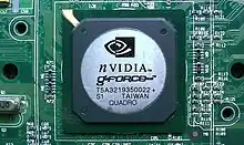 The chip was manufactured by TSMC using its 220 nm CMOS process.[2] There are two versions of the GeForce 256 – the SDR version released in October 1999 and the DDR version released in mid-December 1999 – each with a different type of SDRAM memory. The SDR version uses SDR SDRAM memory from Samsung Electronics,[3][4] while the later DDR version uses DDR SDRAM memory from Hyundai Electronics (now SK Hynix).[5][6]